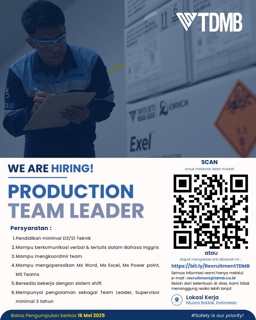 Sehubungan dengan rencana peningkatan volume produksi, kami membuka kesempatan bagi putra-putri terbaik untuk bergabung bersama kami.