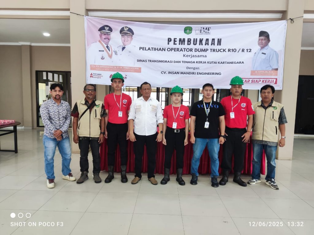 Samarinda, 12 Juni 2025 – Dinas Transmigrasi dan Tenaga Kerja Kabupaten Kutai Kartanegara (Distransnaker Kukar) bekerjasama dengan CV Insan Mandiri Engineering secara resmi membuka pelatihan operator dump truck di Samarinda. Kegiatan ini ditujukan sebagai upaya peningkatan kompetensi teknis tenaga kerja lokal dalam mengoperasikan alat berat, khususnya dump truck roda besar, serta menerapkan standar keselamatan dan kesehatan kerja (K3).